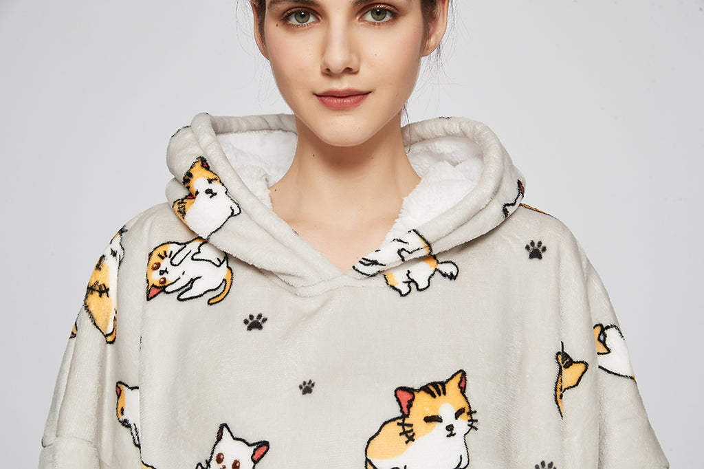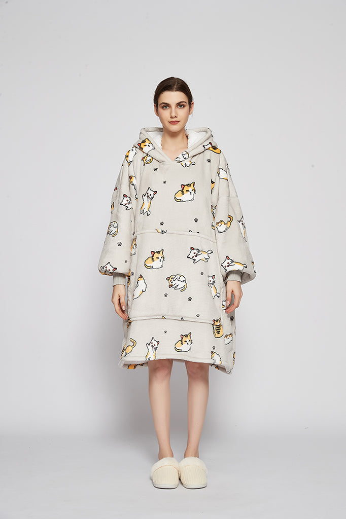 Baby Cat Blanket Hoodie Sherpa Wearable Blanket Sweatshirt with Deep Pockets and Sleeves Lounging Hoodie