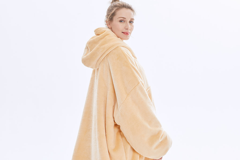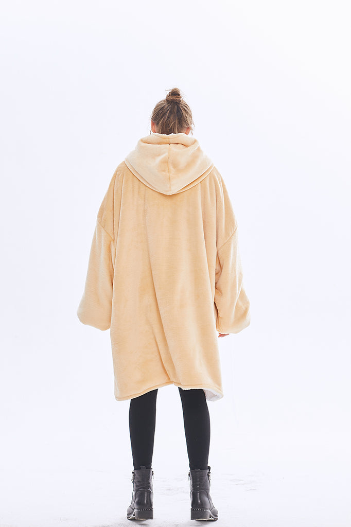 Golden Wearable Oversized Hoodie Blanket Sweatshirt with Sherpa Pocket